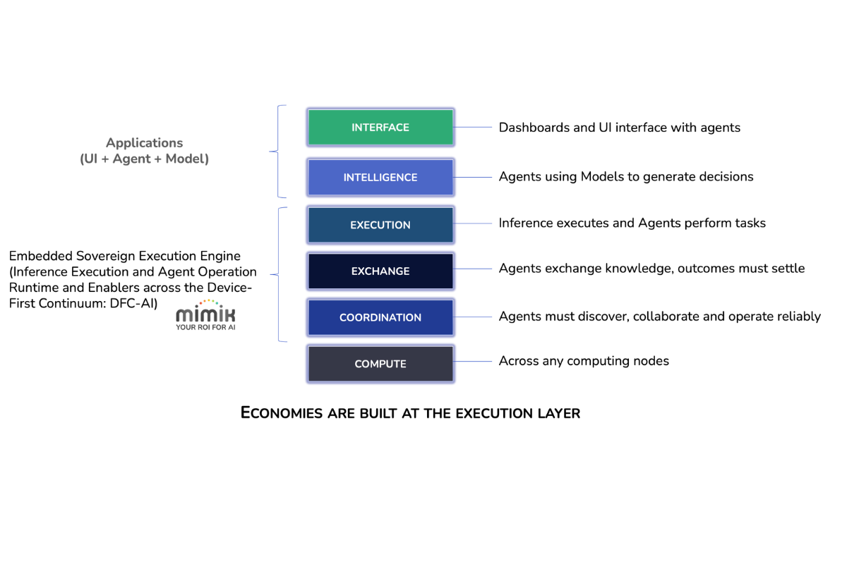 Addressed individually, each is a project. Addressed sequentially, they compound into years of engineering debt. From the moment a system with Embedded Sovereignty powers on, connected or not, all five dimensions are already satisfied. That is the difference between sovereignty as a destination and sovereignty as a design principle. That design principle is also what distinguishes Embedded Sovereignty from an operating system. An operating system is passive by design. It manages resources and waits for instructions. Agents do not wait. They collaborate with other agents in dynamic workflows. Operating based on the principles of follow, observe, respond, and learn, they discover, decide, coordinate, and act proactively based on context, authority, and sovereign policy. What they require is a Sovereign Execution System, one that is device-first by design, as autonomous and context-aware as the agents running within it, and capable of operating across the full compute continuum from the chip to the cloud.